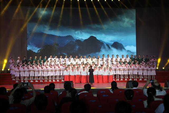 遒劲有力的歌声回荡在汇演现场,此次汇演表演形式较为多元化,合唱团队在演奏的同时,还有领唱、朗诵、伴舞等多种形式来渲染,每一位表演者都拿出了热情,展现对党的感恩,汇演人数近3千人。表演的节目有《四渡赤水出奇兵》、《十送红军》、《为人民服务》、《我的祖国》等十九首脍炙人口的红歌。
